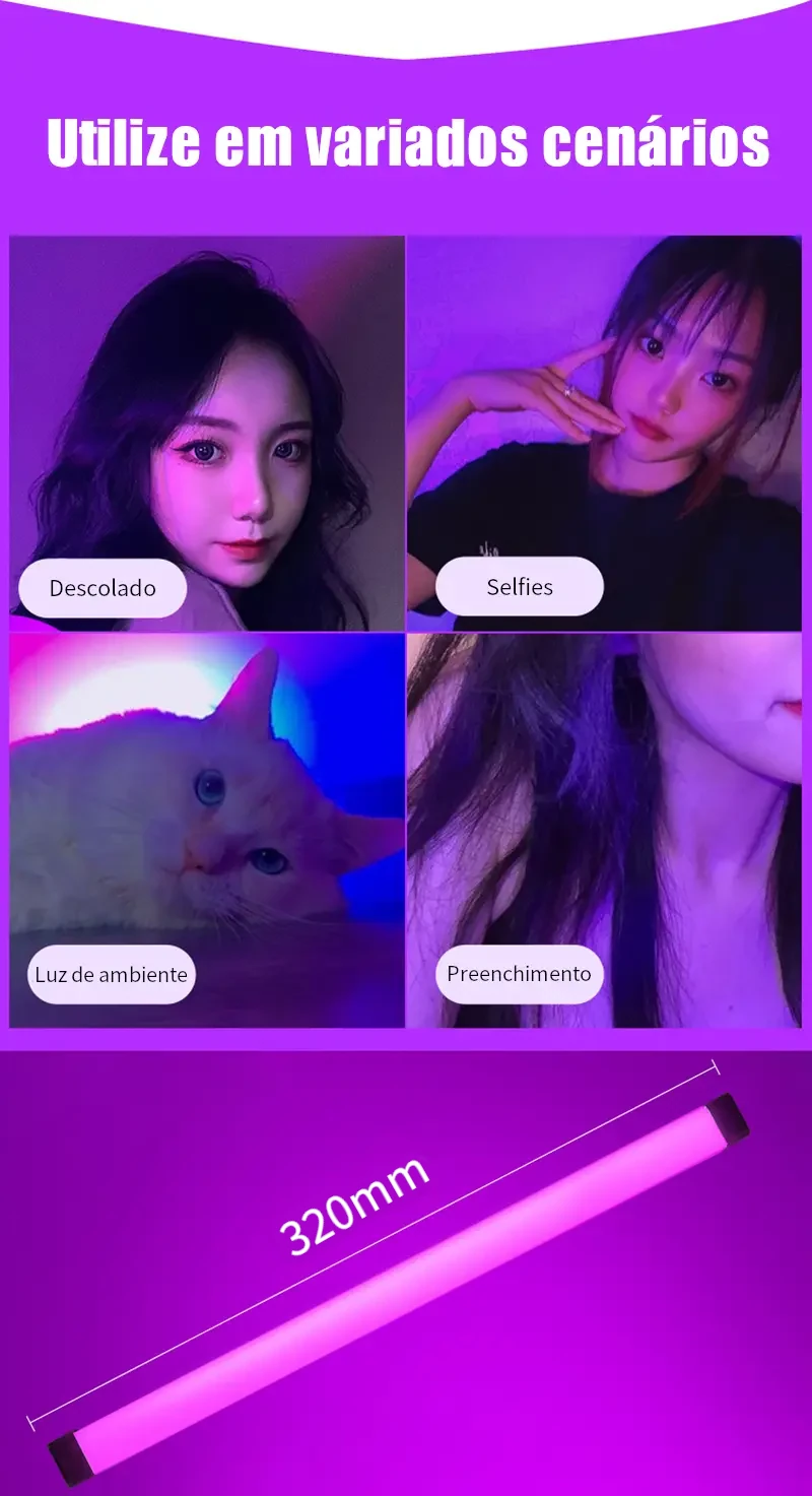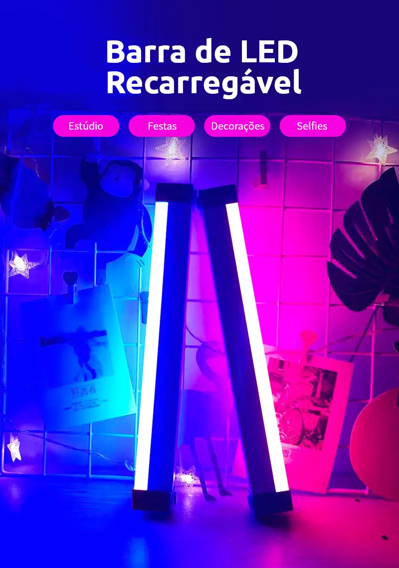 Atenção TikTokers, Instagramers e amantes de luzes! Estamos emocionados em apresentar a vocês esta nova Barra de LED Recarregável de 32CM de qualidade superior.